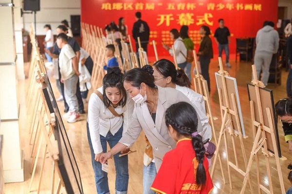 国庆期间,琅琊区首届“五育杯”青少年书画展在滁州大剧院四楼展厅开幕。琅琊区关工委主任杨柳,安徽省艺术鉴赏学研究会会长杨文敏,中国美术家协会理事、滁州学院美术与设计学院原院长赵振华,中国书法家协会篆刻专业委员会委员、安徽省文史研究馆馆员戴武等出席开幕式。