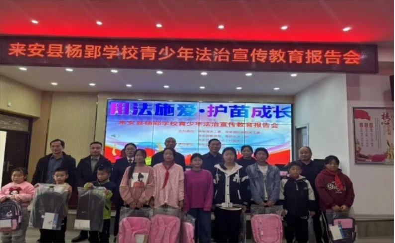 法律,是我们社会的基石,它就像一盏明灯,指引着我们前行的道路,规范着我们的行为,保护着我们的权益。为进一步增强青少年法律意识,安全意识和自我保护能力,11月15日下午,来安县关工委联合县检察院关工委、县教体局关工委、杨郢乡关工委在杨郢乡九年一贯制学校,开展了“用爱施法·护苗成长”青少年法治宣传教育报告会。