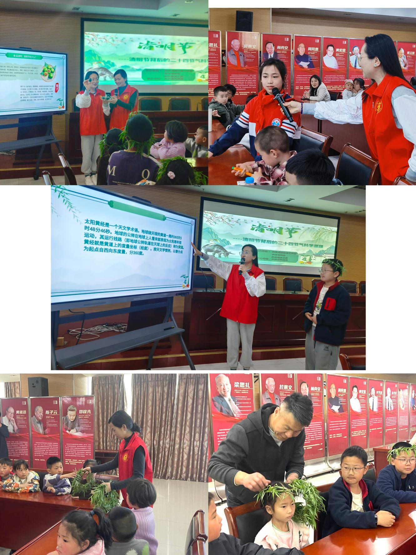 科普活动中,科普志愿者围绕“知清明、忆清明、品清明、唱清明、探清明”五个板块,让来馆青少年和家长知晓什么是清明节、清明节的由来与文化背景、节日活动习俗和传统美食、分享古代经典诗篇和各地传唱名谣,品位青团、制作柳编花环等。在探清明活动环节,志愿者带着大家一起探究清明节背后的二十四节气科学原理,通过精彩图文、权威专家解读黄道和黄经、二十四节气的太阳黄经度数等,节气天文学的小科普深深吸引了大家的眼球。