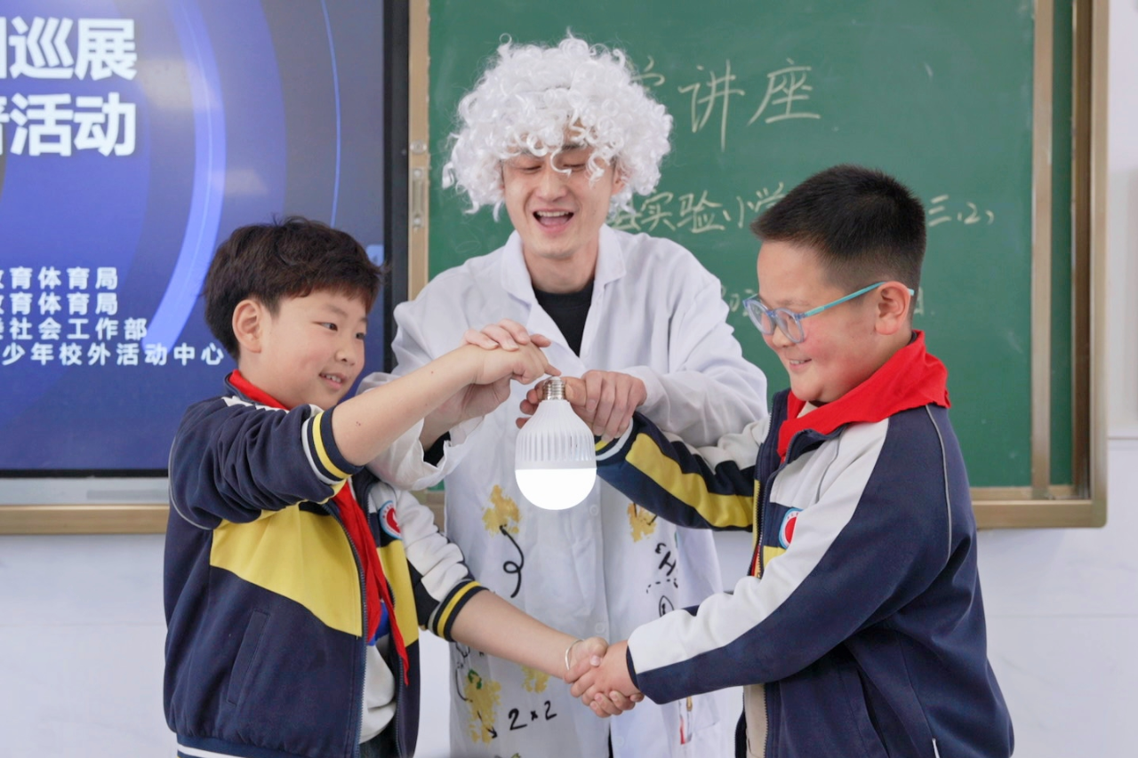 据悉,本次巡展包含了“雅各布天梯”“手蓄电池”“听话的小球”等20余件科普展品,涵盖电磁学、物理学、人体奥秘等多个领域。为了让讲解更加生动,志愿者们提前两周打磨科普内容、设计互动环节。“看到孩子们追着我们问问题时,所有的努力都值得了。”丁萍笑着说道。