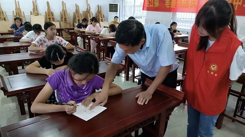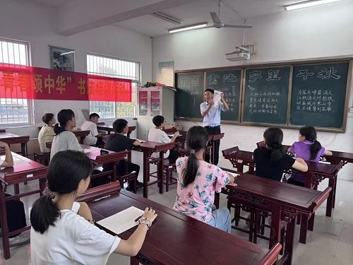 在国庆和中秋佳节即将到来之际,为厚植广大青少年爱党爱国情怀,推动新时代青少年文明实践活动向纵深发展。9月18日,定远县连江镇关工委会同镇新时代文明实践所、老年学校部分志愿者,带着对广大青少年学生关心关爱的深情厚谊走进连江学校,开展以“笔墨伴国庆,青春颂中华”为主题的书法培训活动。