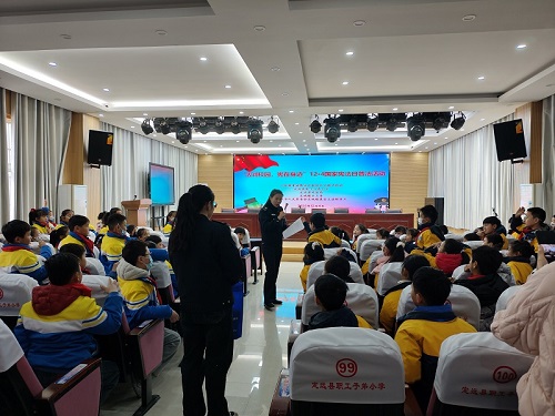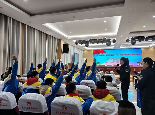 为弘扬宪法精神,增强青少年法治意识,12月4日,定城镇关工委联合靠城路社区,走进职工小学开展“宪法宣传教育进校园”主题活动,为同学们带来了一堂生动的法治教育课。