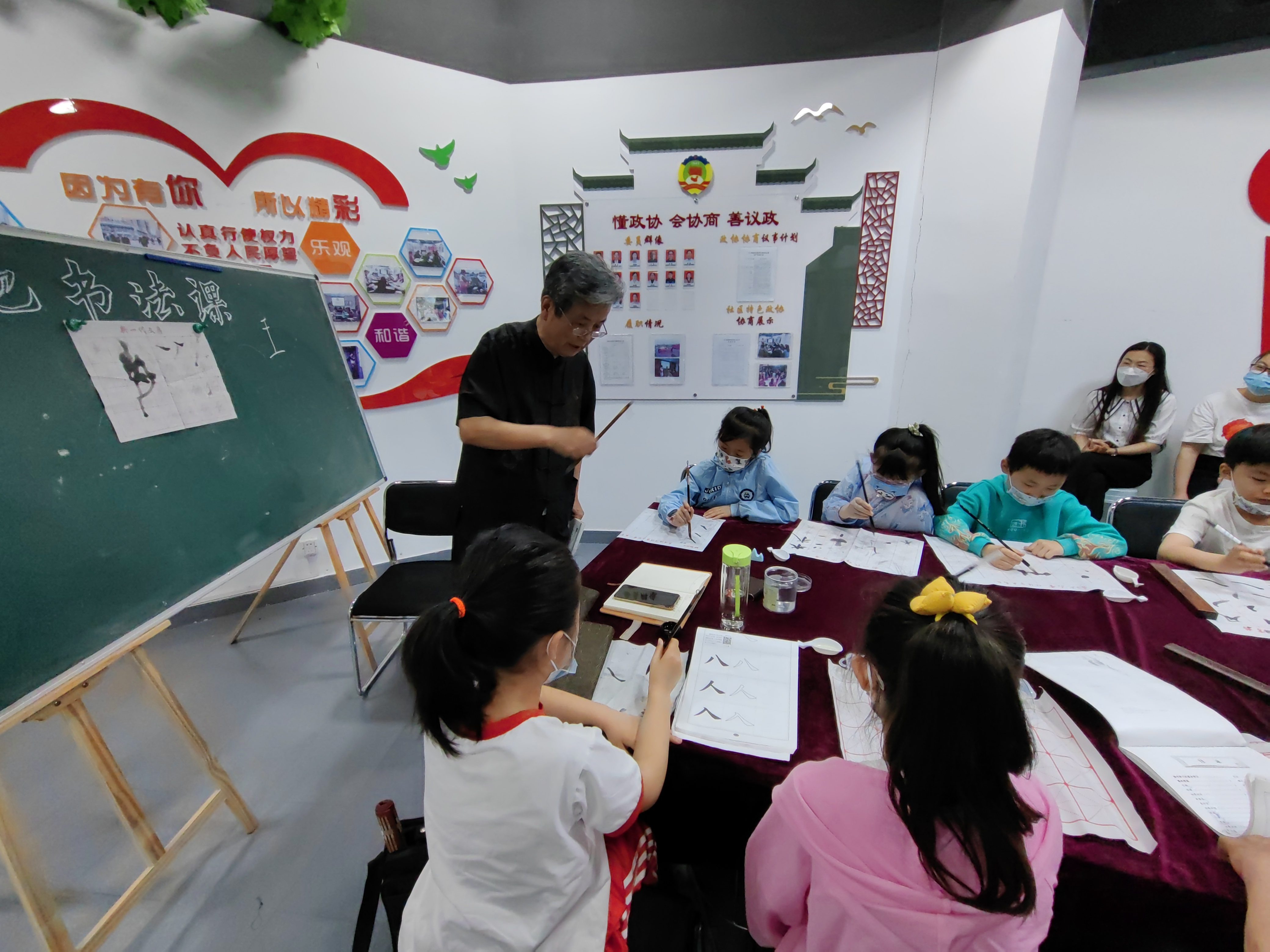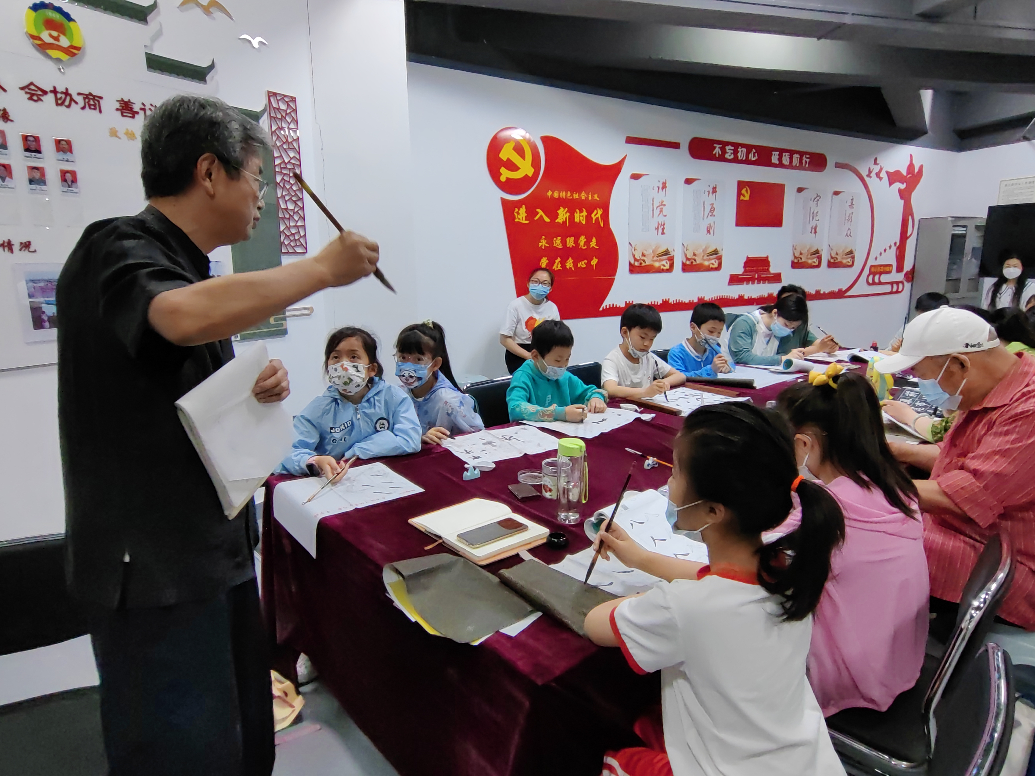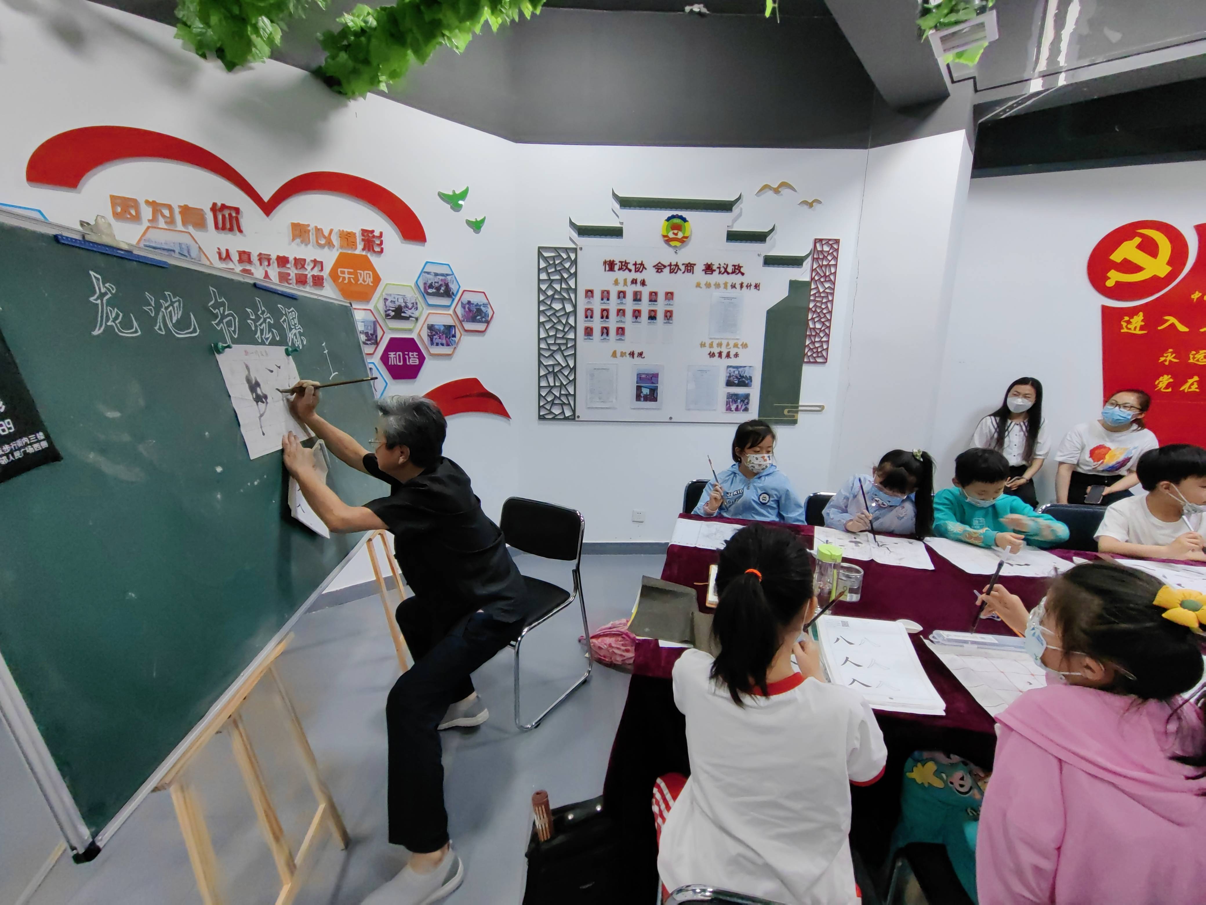 “同学们大家好,疫情期间有没有在家练字啊,一会可要考考你们啊。”一进龙池社区关工委“五老工作室”书画室,就听见“五老志愿者赵德华老师高亢的声音。5月28日龙池社区关工委特色项目“五老工作室—书画室”,30余名孩子在赵老师的带领下畅游在中国书法知识的海洋中。