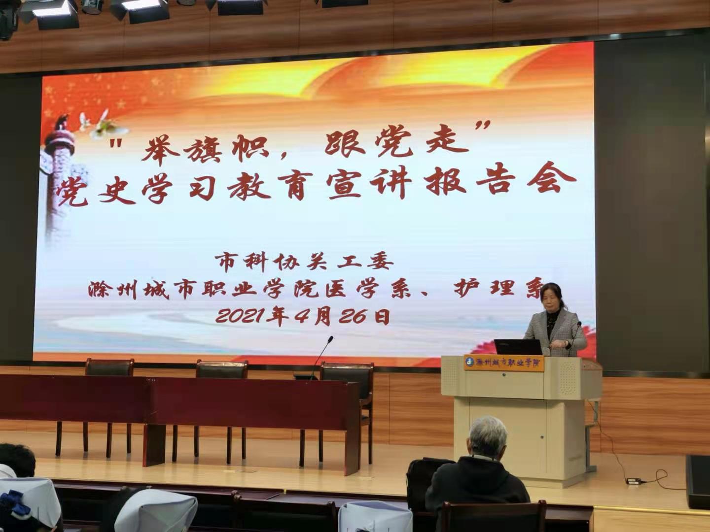 4月26日下午,市科协关工委邀请吴惠珍教授在市城学院,为师生讲党的发展史