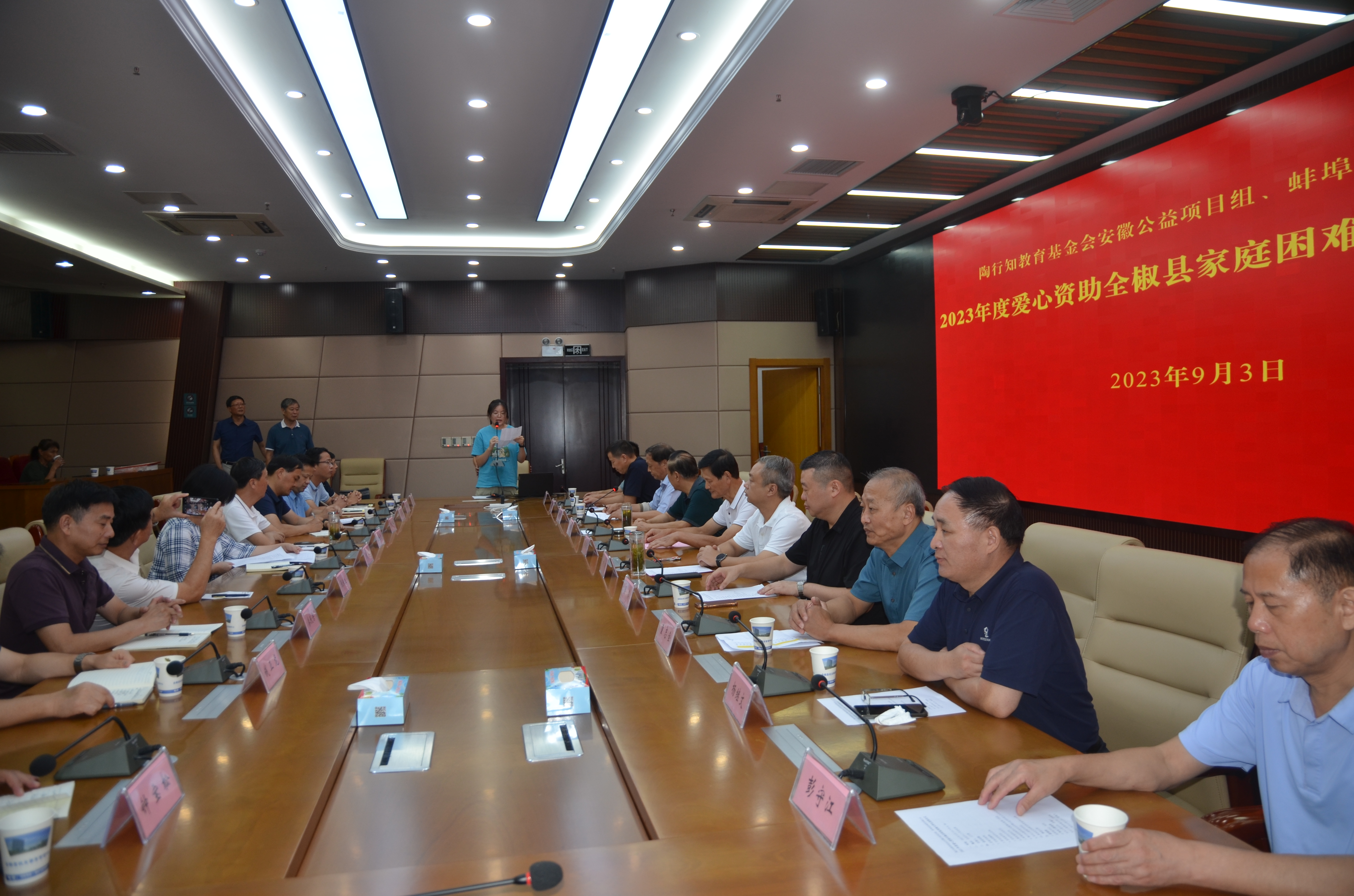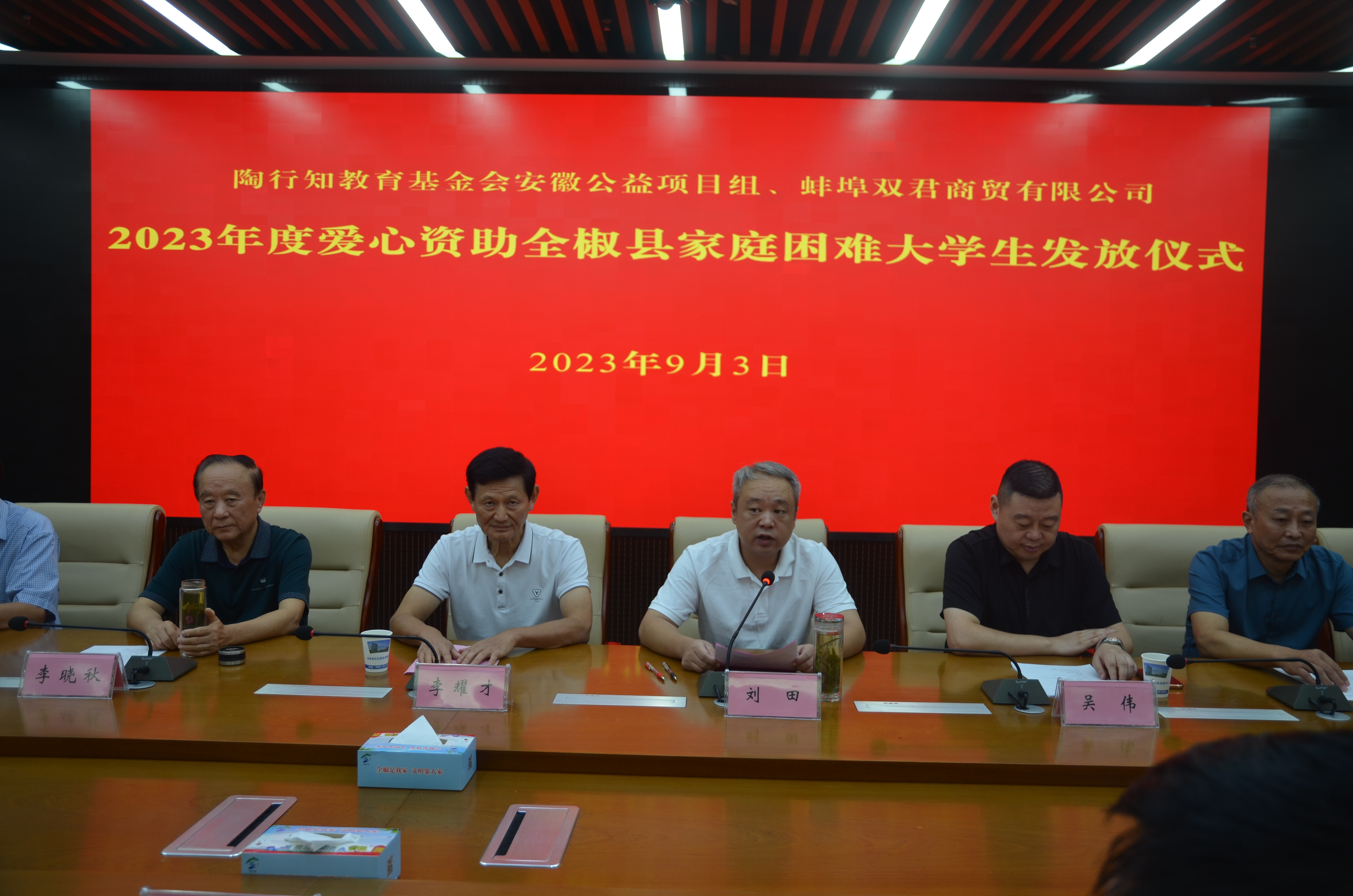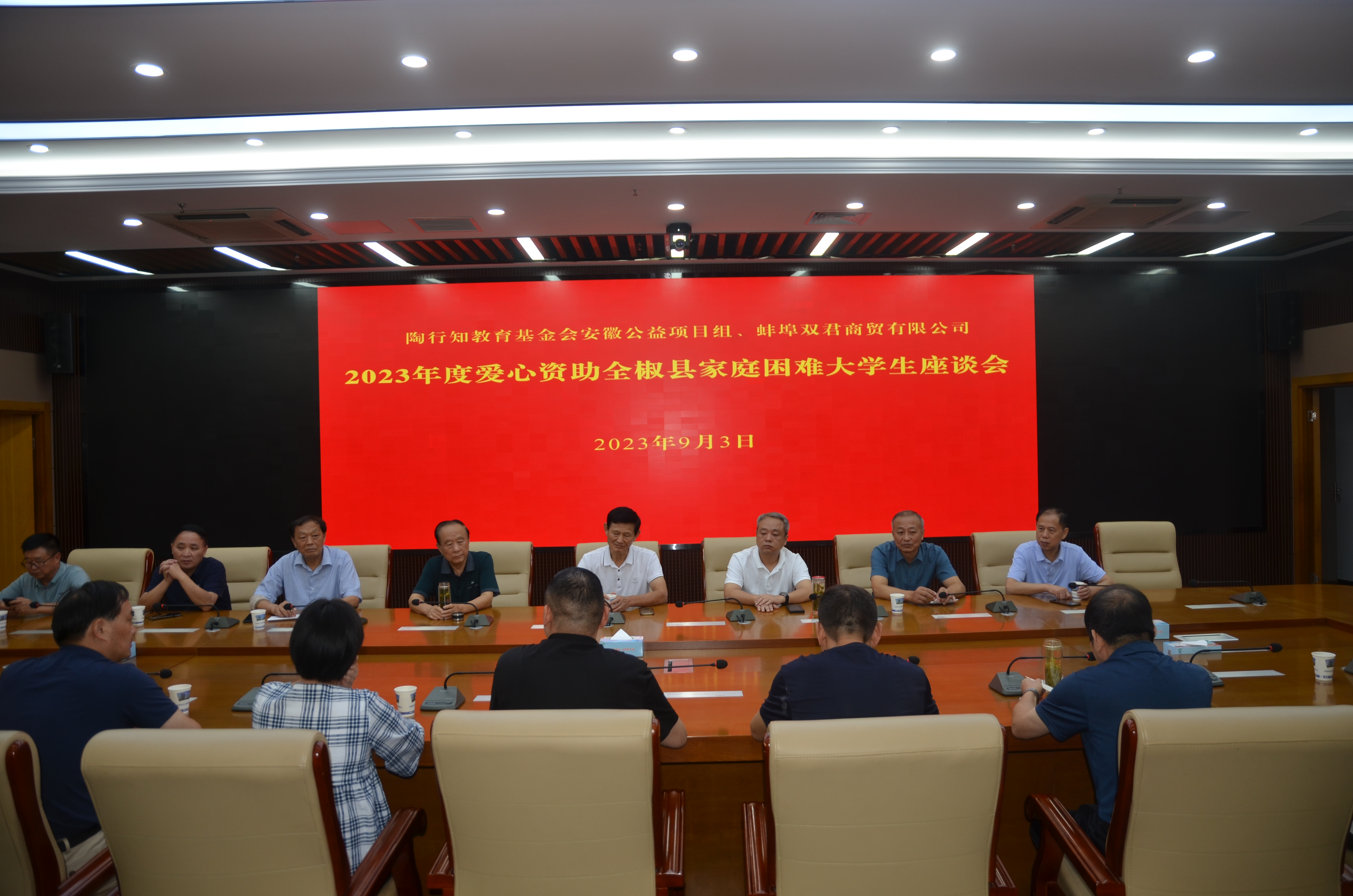 9月3日下午,彩运网对接陶行知教育基金会安徽公益项目组、蚌埠双君商贸有限公司,到全椒县举办爱心资助全椒县家庭困难大学生发放仪式,