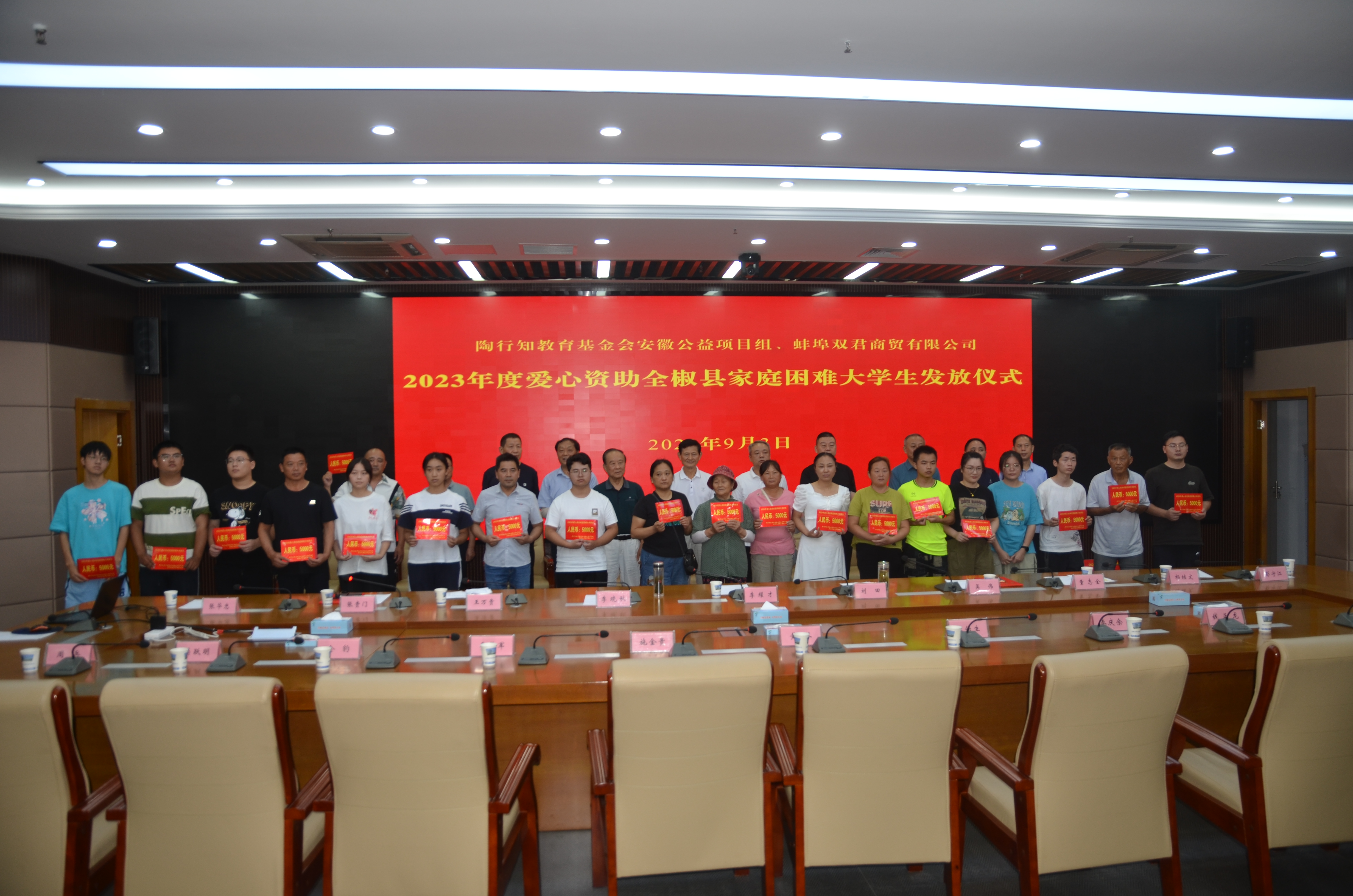 2023年9月3日彩运网到全椒县举行“陶行知教育基金会安徽公益项目组、蚌埠双君商贸有限公司爱心资助家庭困难大学生发放仪式”活动